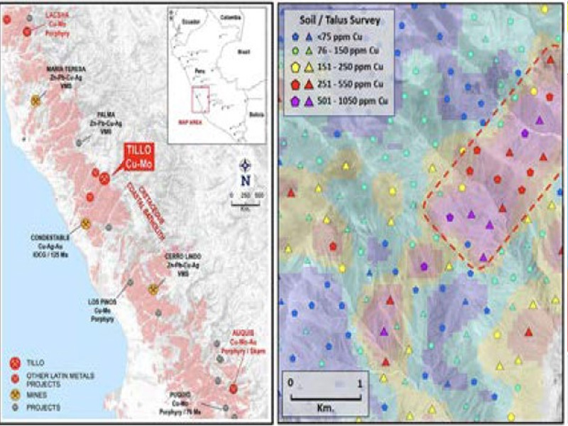 Vancouver, anunció que ha descubierto zonas de mineralización de cobre de alta ley en el proyecto Tillo de 2,000 ubicado en la faja costera de cobre